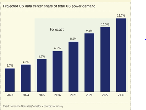 Data Center Demand Expected to Boom: Power Demand for data centers keep growing through 2030 as this McKinsey chart shows.