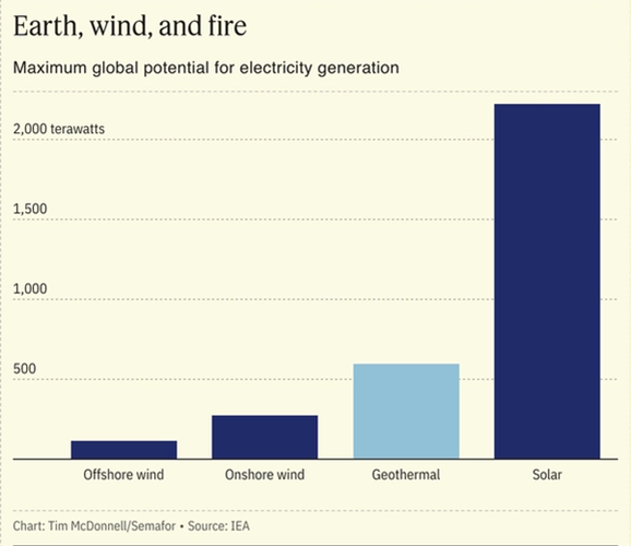 Geothermal has Huge Upside Potential: Technology advances, especially drilling techniques borrowed from the US fracking industry, are making it possible to tap hotter resources deeper underground. By 2050, the IEA said, geothermal could go from providing less than 1% of global energy to more than 15%, and could be especially useful for Asian countries trying to reduce their reliance on coal, as well as for powering data centers.