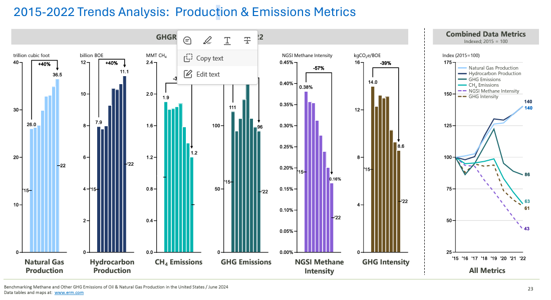 Methane Emissions Falling While Production Increased: National fossil fuel production rose substantially from 2015 to 2022, but total methane and overall carbon emissions from that activity actually fell, according to a new CATF/Ceres Report.
