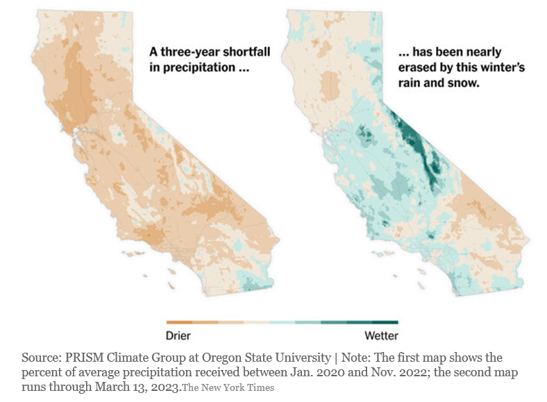 California Snow/Rains Have Cut into Drought Status: A great chart from the New York Times: