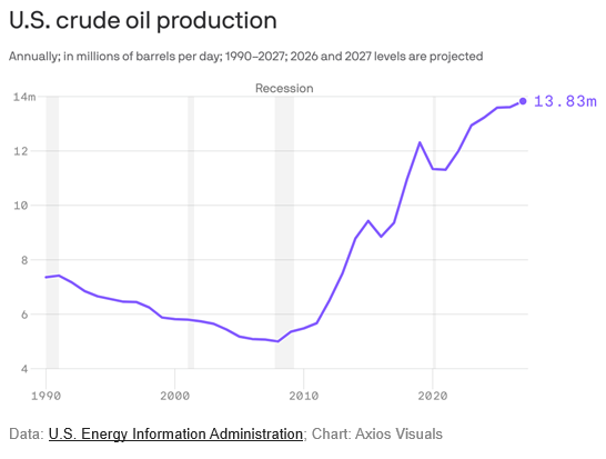 Iran Conflict Inflation Hits: EIA says US oil production will stay flat this year and rise slightly in 2027.