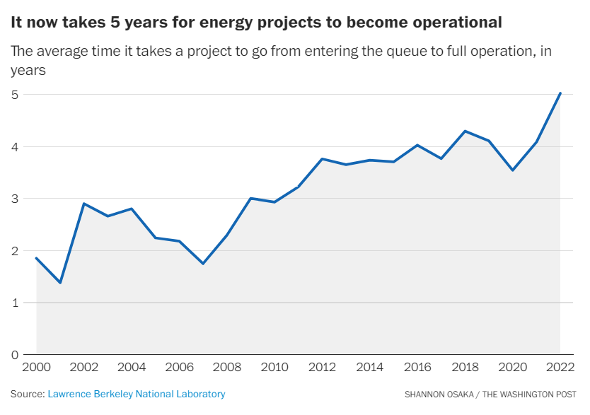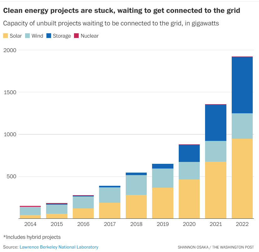 Why the U.S. is so bad at building clean energy in 3 charts from Shannon Osaka at The Washington Post