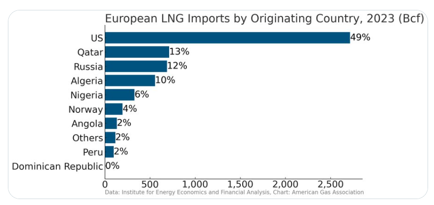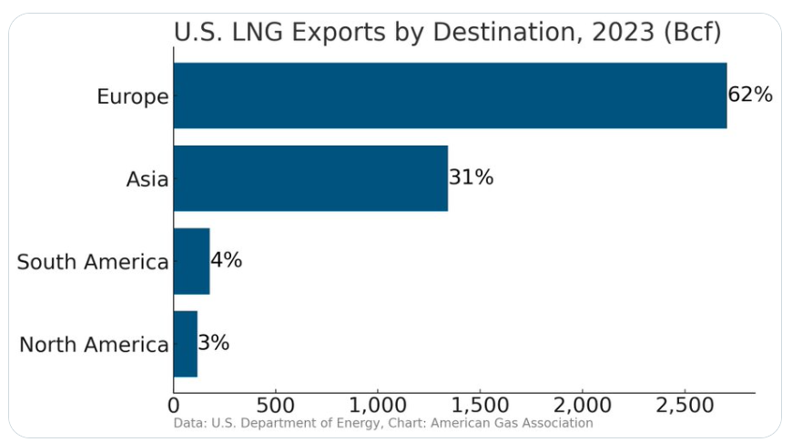 US LNG Powering Europe: The U.S. is the new bedrock of European energy security. The charts below show that 1) Most LNG imports into Europe were from the U.S. in 2023 and 2) Most LNG imports into Europe were from the U.S. in 2023.
