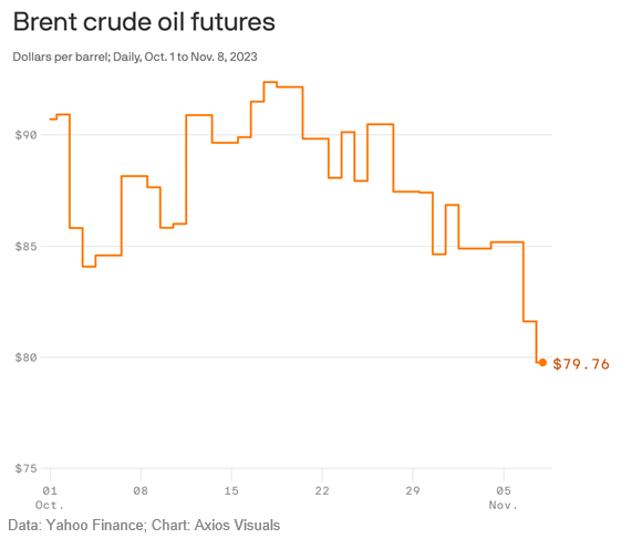 Dropping Oil Prices: Crude's descent over the last two weeks has left prices well below levels seen just before Hamas' terrorist attack against Israel.
