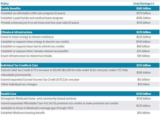 We don’t yet know if senators will agree with the White House budget numbers or if they will feel the need to include more revenue raisers. Also, while portions of the House bill have been pre-negotiated by representatives of the House, the Senate and the administration, we are told that will not preclude a lively debate on senators’ additional legislative priorities. Significantly, Senator Joe Manchin (D-WV), who represents the necessary fiftieth vote for the package, has not yet committed to support the bill and may very well present the Senate Majority Leader with a wide-ranging list of demands required to get him on board. We will have more on the legislative path forward in a later update.