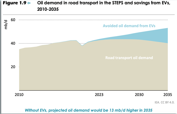 IEA on EVs, Oil Demand: An interesting chart from the recent IEA World Energy Outlook shows two interesting things on the outlook for oil: 1) It is perhaps overly generous in its interpretation of how many EVs will be in the marketplace by 2035 (or maybe not given China rapid deployment) and 2) we still going to need a LOT of oil going past 2035.