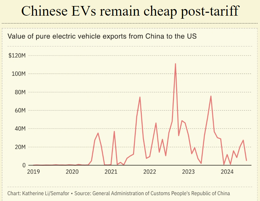 Chinese EVs remain cheap post-tariff: Some Chinese electric vehicles will remain cheaper than their US competitors even after a 100% tariff imposed by President Joe Biden takes effect in late September.