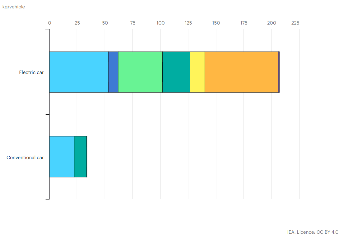 Critical Minerals in EVs versus Conventional ICE cars – Minerals used in electric cars compared with conventional ICE cars: